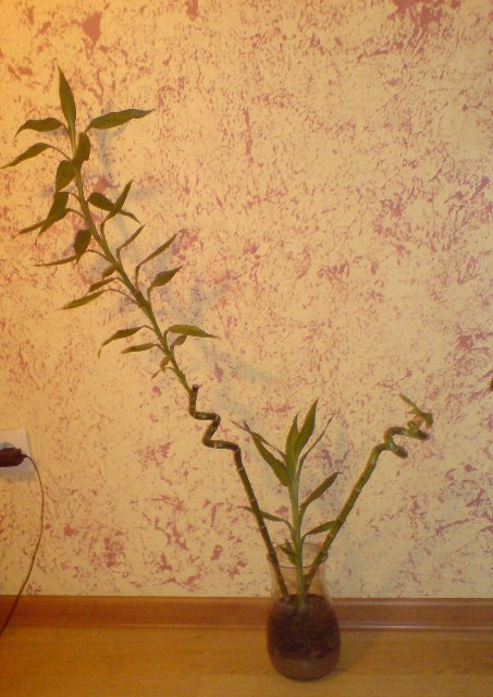 z tego co wiem to ma stac w wodzie. Są takie cieniutkie fajne wazoniki właśnie do bambusów