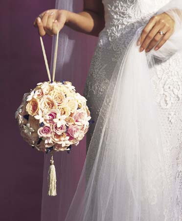 Nie podoba mi się za to kolor. Nie przepadam za jasnymi bukietami ślubnymi, bo moim zdaniem zlewają się kolorystycznie z suknią i dziwnie to wygląda. Tak jak napisała mloda, bukiet powinien się odznaczać na tle sukni.