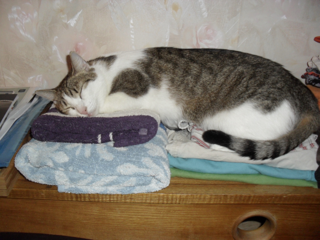 Cytryna kocha spać na praniu