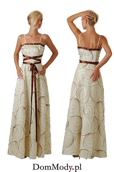 sukienka satynowa w kolorze kawy z mlekiem, na cienkich ramiączkach, z wzorkiem ornamentowym - Cubus;
