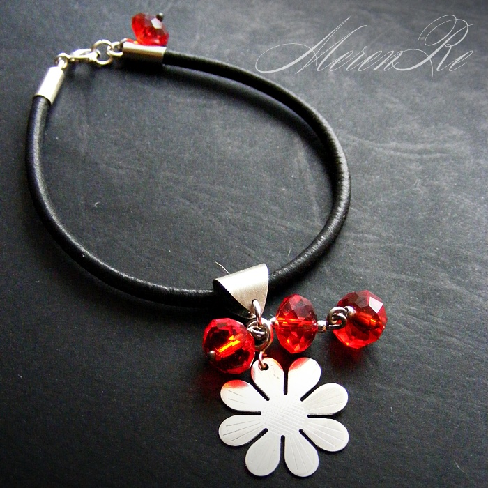 kolejne rzemienne tym razem ze swarovskim, oraz wszystkie elementy srebrne próby 925. W wersji kwiatuniowej i serduniowej:) srebrne serduszko i kwiatek ma zawieszkę charms, wiec można odpinać, nosić same swarki a serduszko/ kwiatek przypiąć do innej bransoletki