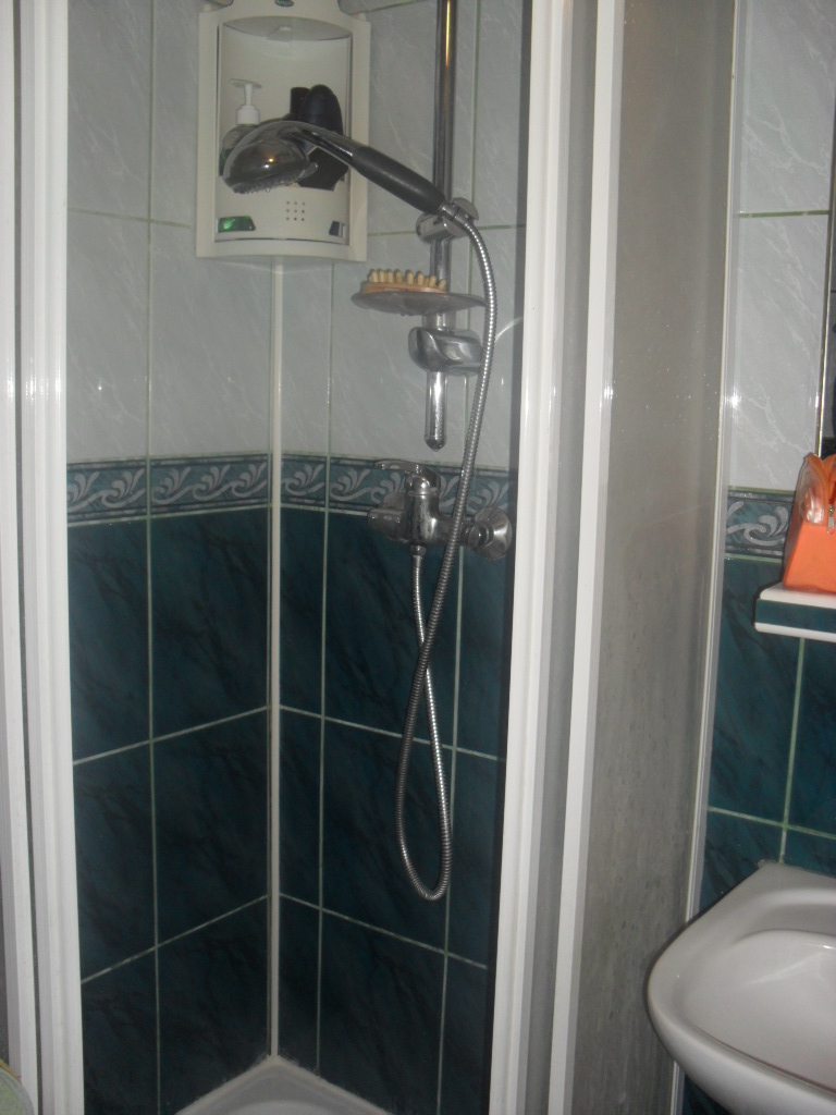 Łazienka ma ładny kolor płytek, urządzona bardzo elegancko- szkoda tylko, że wanny nie ma
