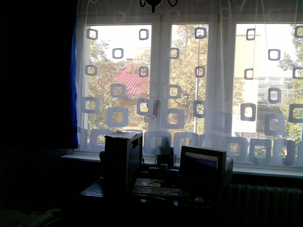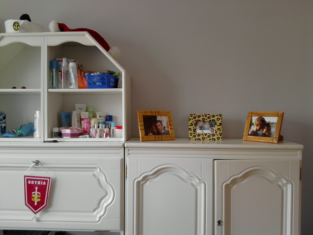 W domku też nie mam bajerów, zwykły pokój, nie urządzam go szczególnie, bo jestem tam tylko jakieś 2 dni w miesiącu... ale powiem Wam, że marzy mi się urządzenie wszystkiego. Mebelków, firanek, poduszek... itd. Z "moich" rzeczy mam na razie tylko lustro i małe biurko, też kupione, bo na którejś stancji nie było. Obecnie stoi w domu jeśli siostra mi go nie podkradnie. Jeszcze nie widzę sensu sprawiania sobie dodatków i mebli, póki nie mieszkam gdzieś na stałe.