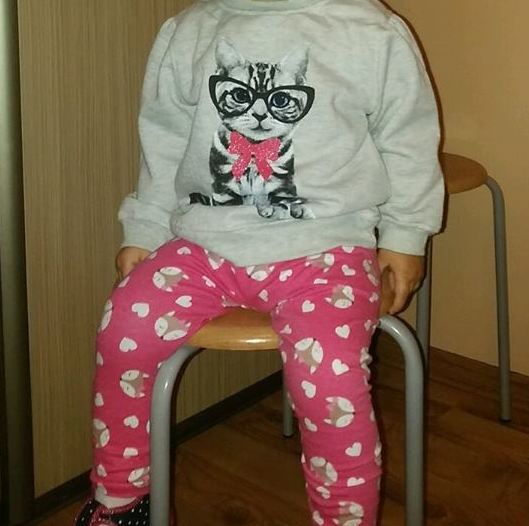Ostatnio dla chrześnicy kupiłam w Pepco na wyprzedaży legginsy w liski (5 zł) i sweterek z kotem (10 zł).
